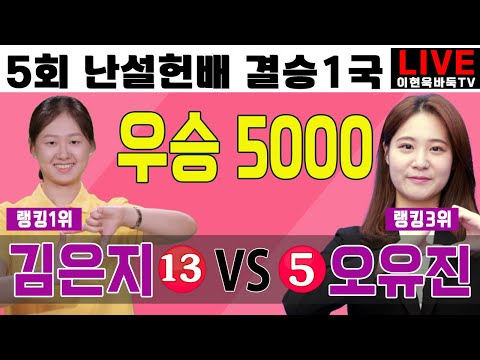 12월13일 오후4시 [LIVE] "우승5000" "김은지" 오유진 결승대국 [5회 난설헌배 전국 여자바둑대회 결승1국] 김은지VS오유진 #난설헌배